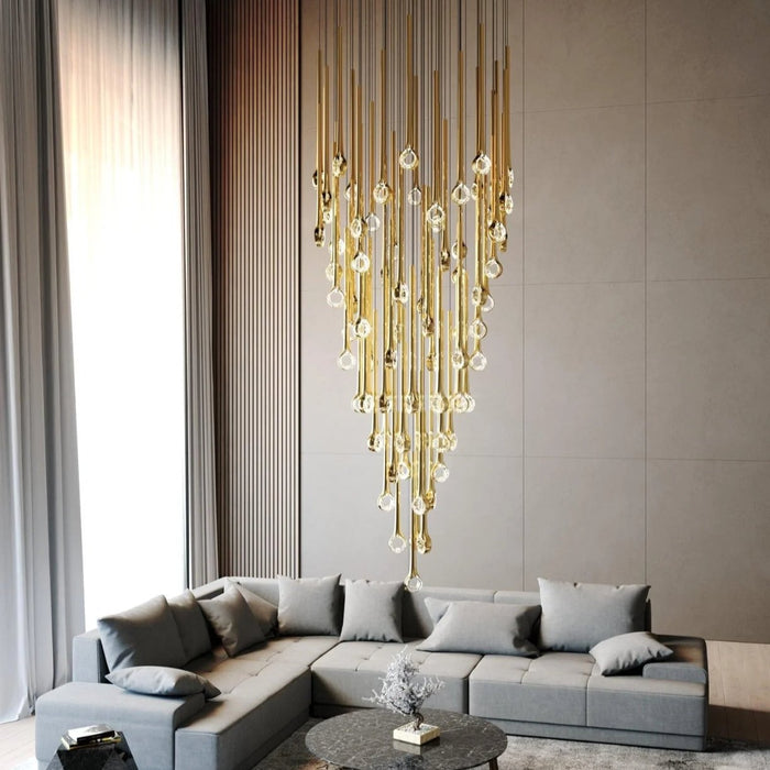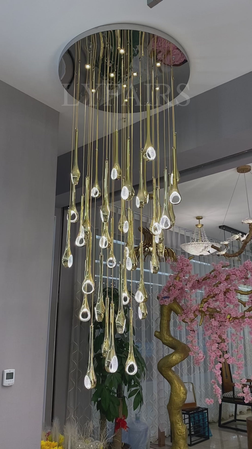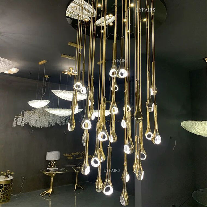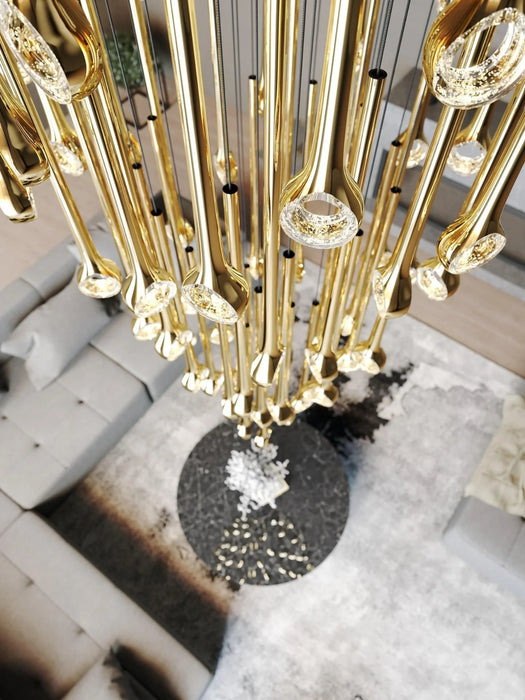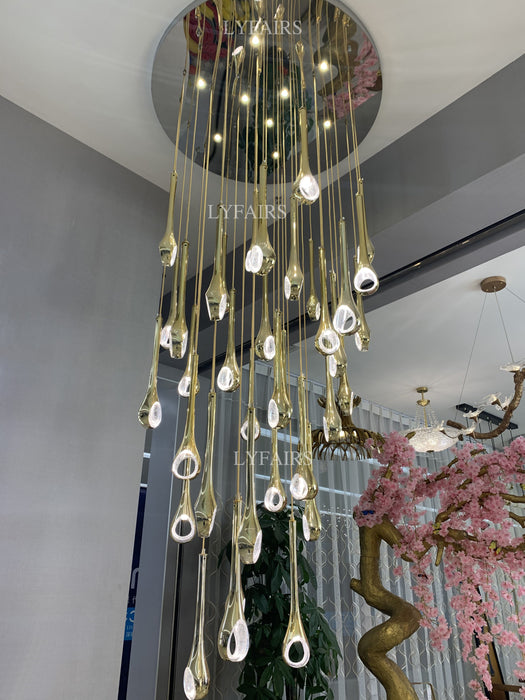 Modern Floating Long Gold Pendant Celing Chandelier for Living Room/High-ceiling