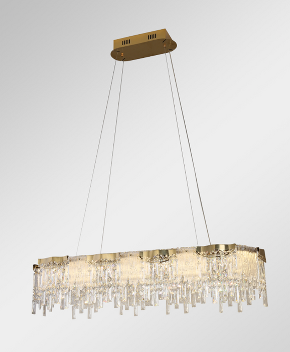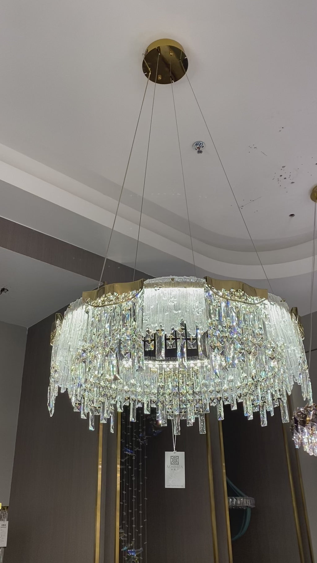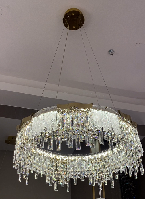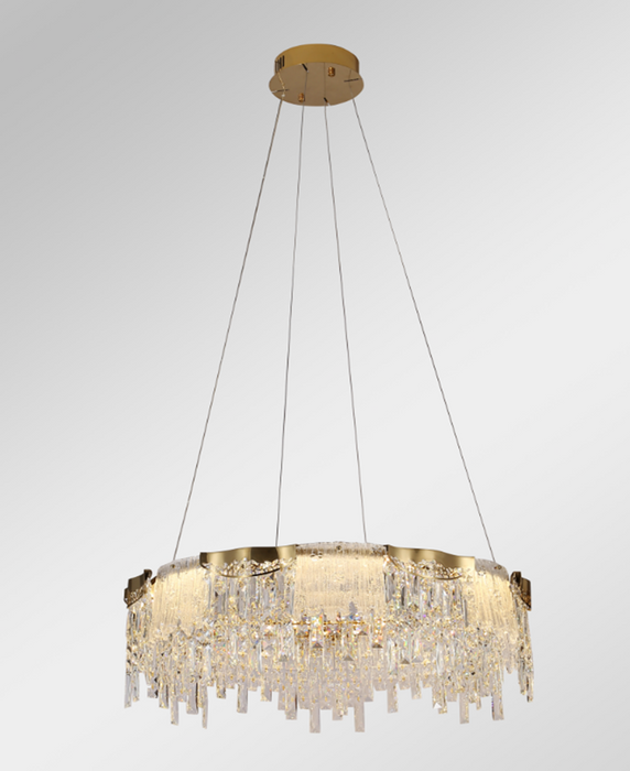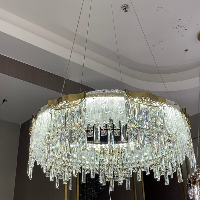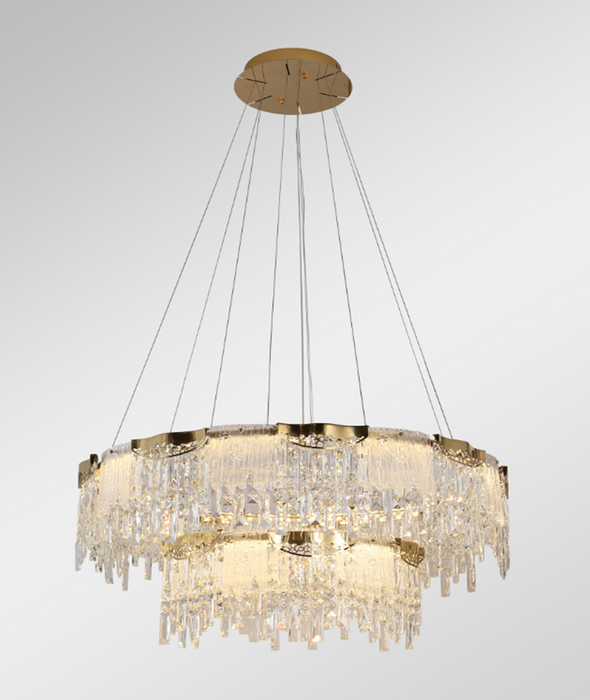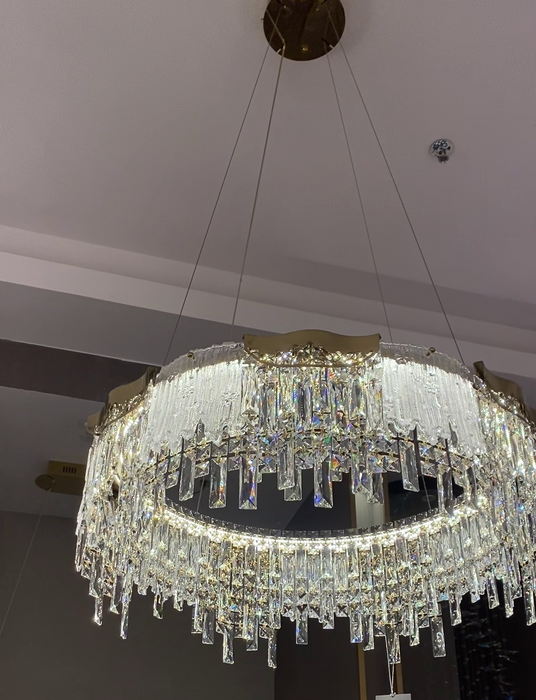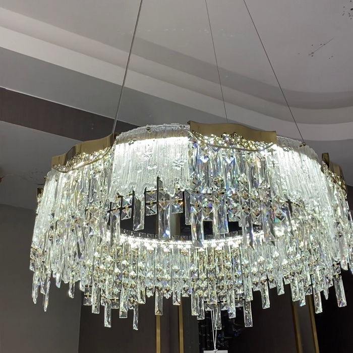 Lámpara de araña de cristal redonda/Rectangular de 1/2 niveles, moderna y ligera, con acabado dorado champán para sala de estar/comedor/dormitorio