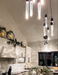 Lámpara colgante de techo redonda/rectangular de lujo, moderna, con acabado negro, para isla de cocina/escalera/sala de estar
