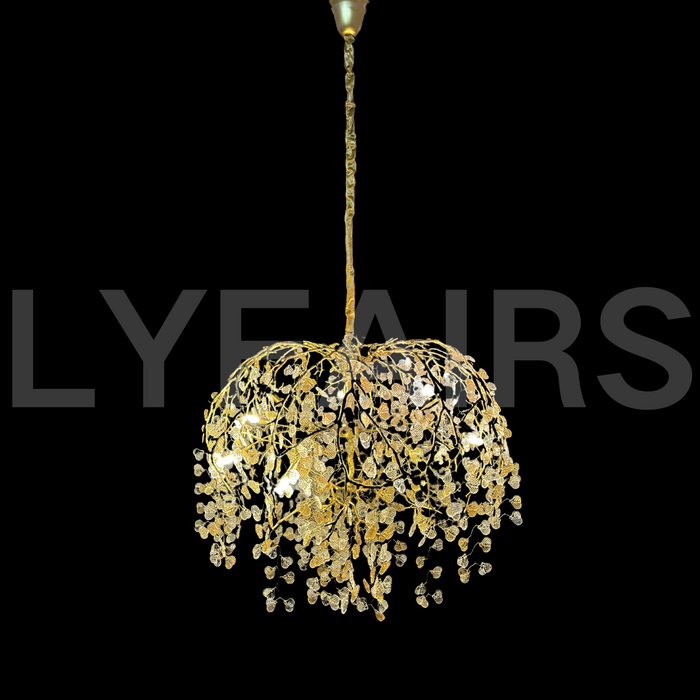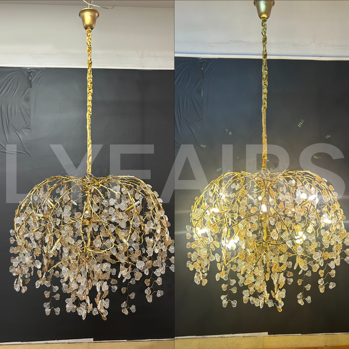 Lámpara de araña de cristal con rama de hoja de lujo moderna, arte de cobre para sala de estar/comedor/dormitorio