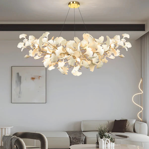 Lámpara de araña de cerámica Ginkgo lineal de lujo moderna para comedor/isla de cocina