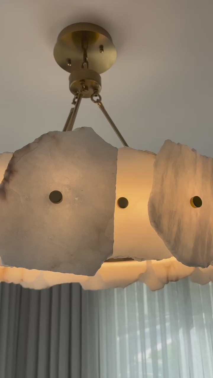 Modern Round/Linear Alabaster Chandelier for Living Room/Dining Room/Kitchen Island