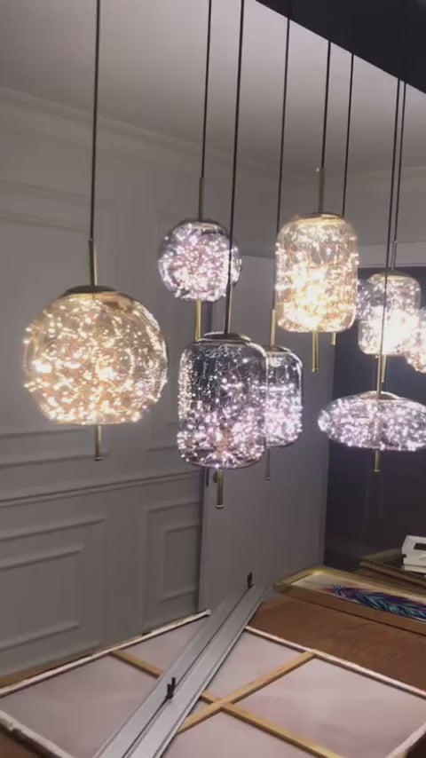Modern Starry Smoky Gray/Amber Glass Shade Chandelier with Rectangular Canopy
