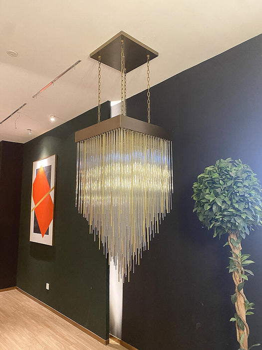 Modern Waterfalls Square Glass Tubes Chandelier