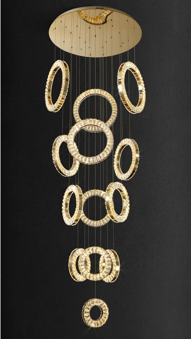 Moderno anillo de araña de cristal con forma de rosquillas doradas múltiples, accesorio de iluminación redondo para vestíbulo, escalera, sala de estar, bar, vestíbulo del hotel, entrada, LOFT