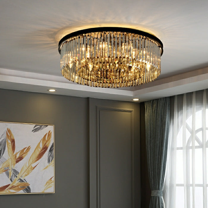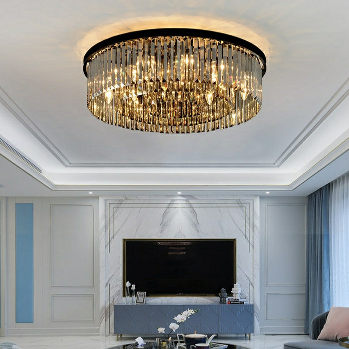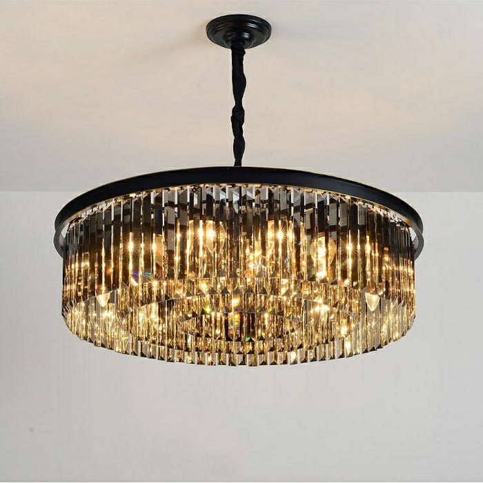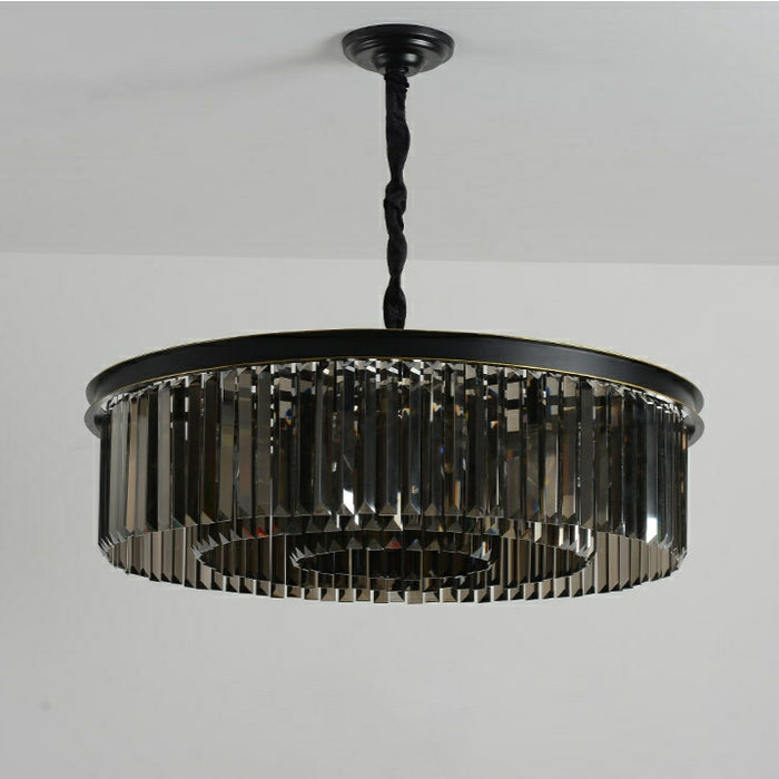 Popular acabado en negro/candelabro de cristal redondo gris ahumado para sala de estar/lámpara colgante
