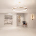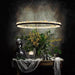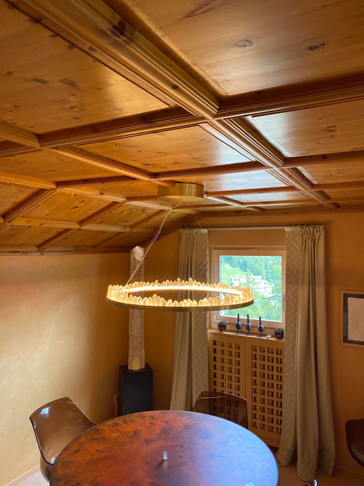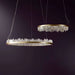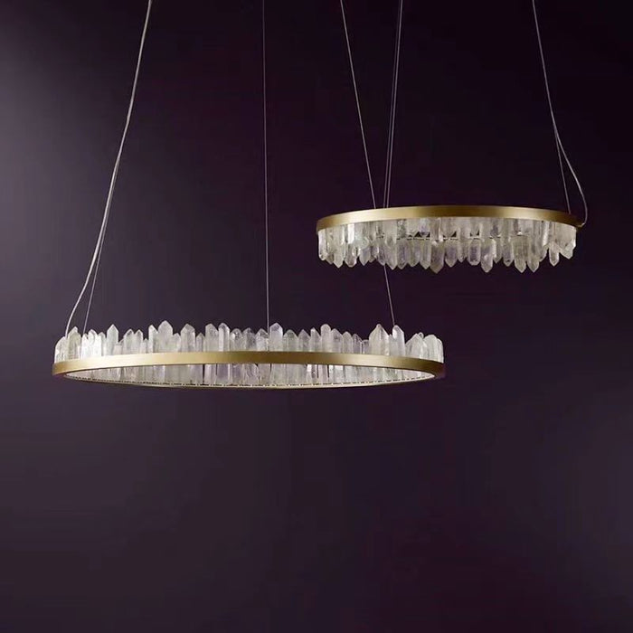 Lámpara de araña de cristal de cuarzo natural y latón con anillos de estilo moderno, acabado en latón/negro