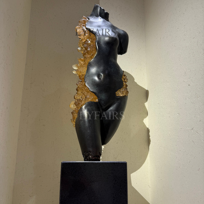 Shattered Beauty Classical Female Torso Sculpture Table Decor with Raw Crystals