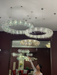 Lámpara de techo de lujo con cuentas de cristal coloridas y círculo excéntrico único para sala de estar y comedor