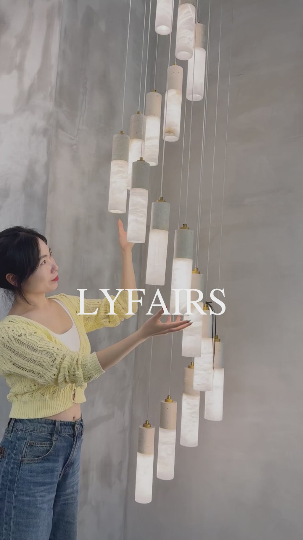 Wabi-Sabi Travertine & Alabaster Tube Chandelier