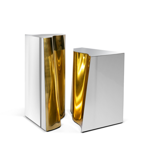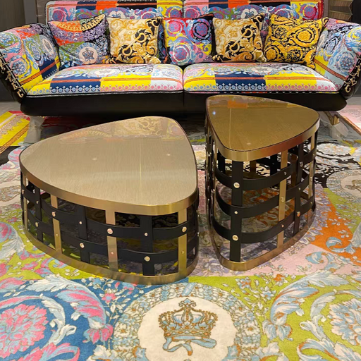 Visualizza tutti i dettagliSapientemente realizzato in pelle, metallo e legno, questo tavolino in stile italiano vanta un design lussuoso e una forma triangolare irregolare. ...