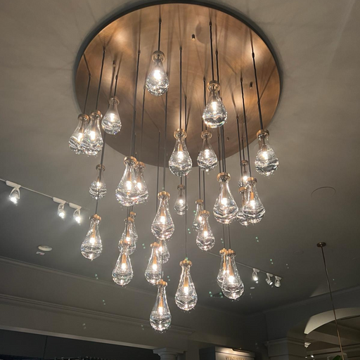 Visualizza tutti i dettagliMigliora il tuo soggiorno, la scala o l'atrio con il nostro moderno lampadario galleggiante a goccia di pioggia. Realizzato con vetro a forma di go...