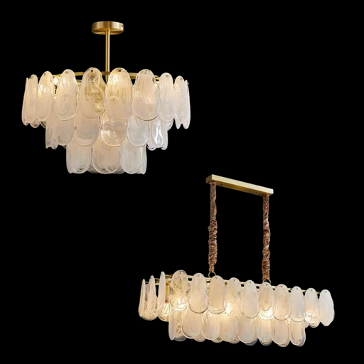 Visualizza tutti i dettagliQuesto squisito set di lampadari presenta un cerchio di pezzi di vetro realizzati a forma di conchiglie. I dettagli francesi decorati e il baglior...