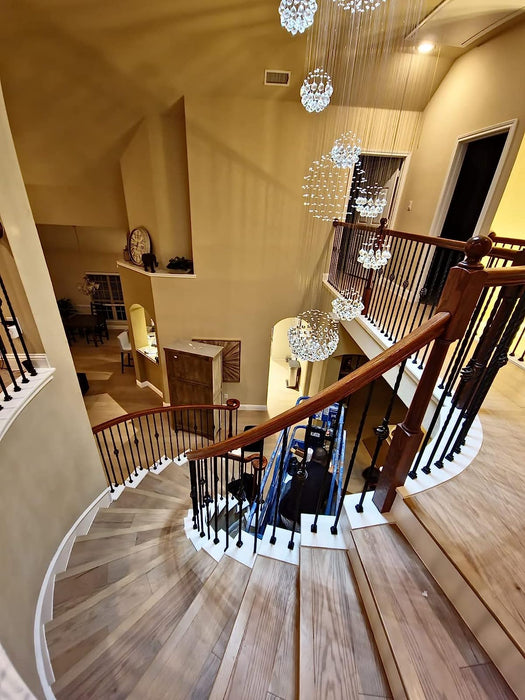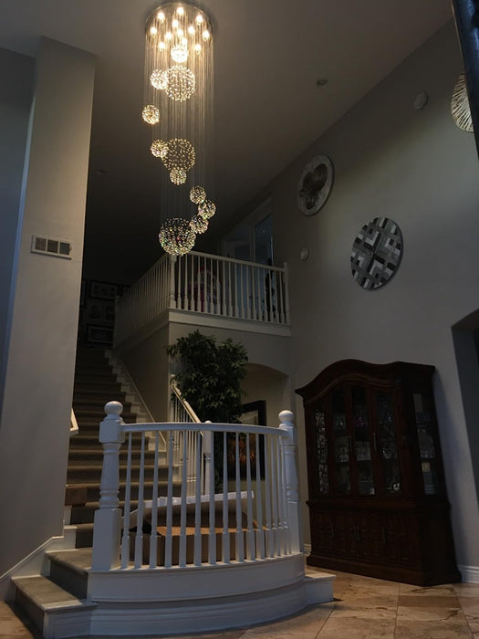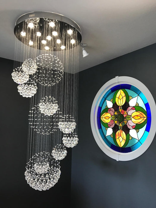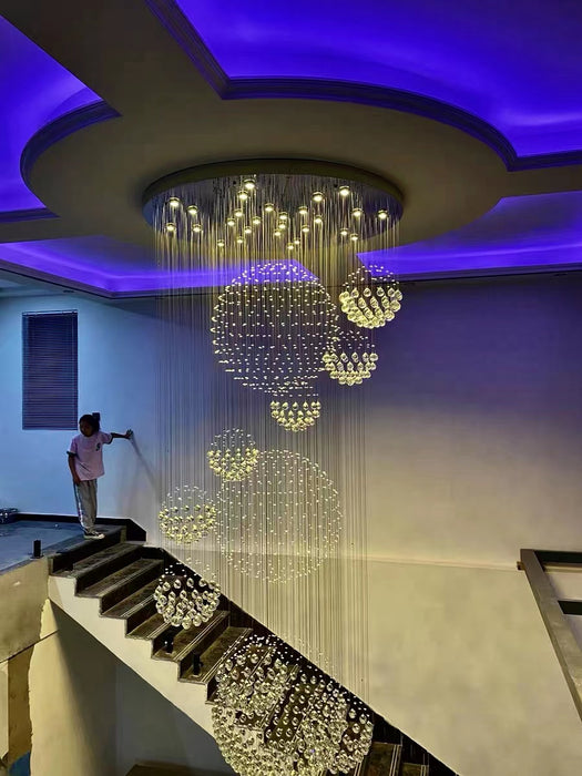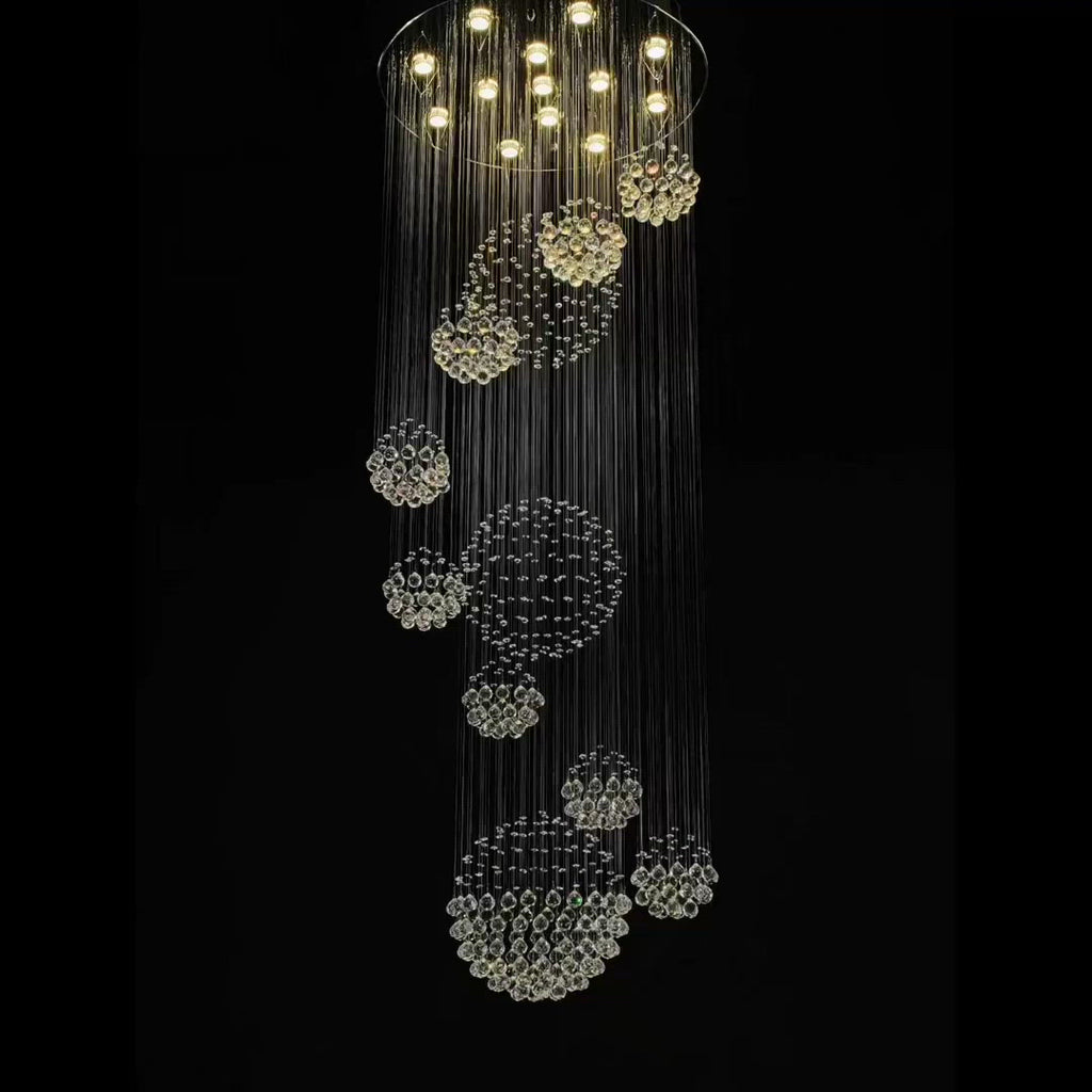 Lampadario a sospensione a soffitto a forma di globo a goccia di pioggia a spirale con lampadario di cristallo duplex maestoso per ingresso/scala