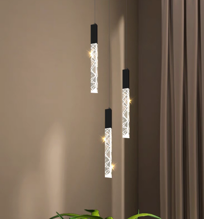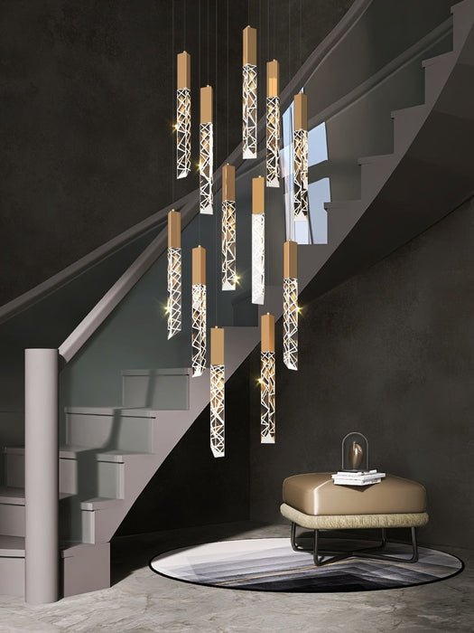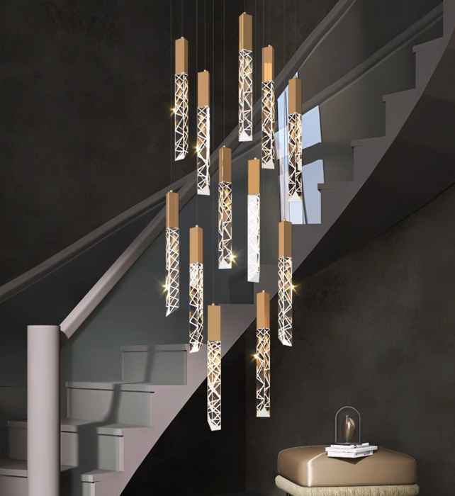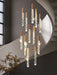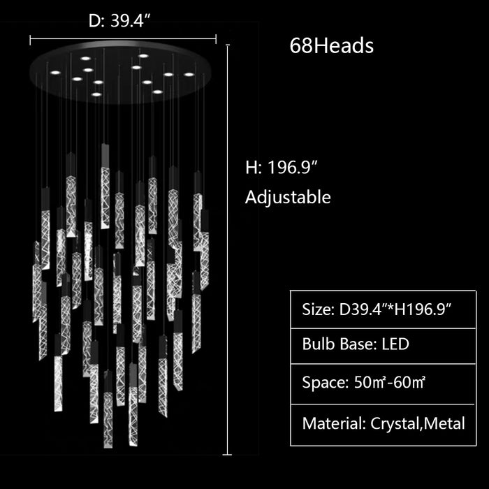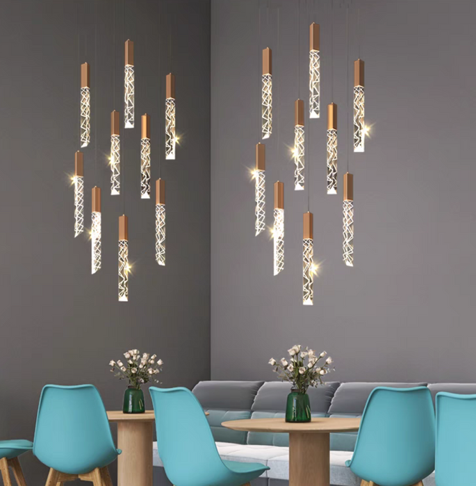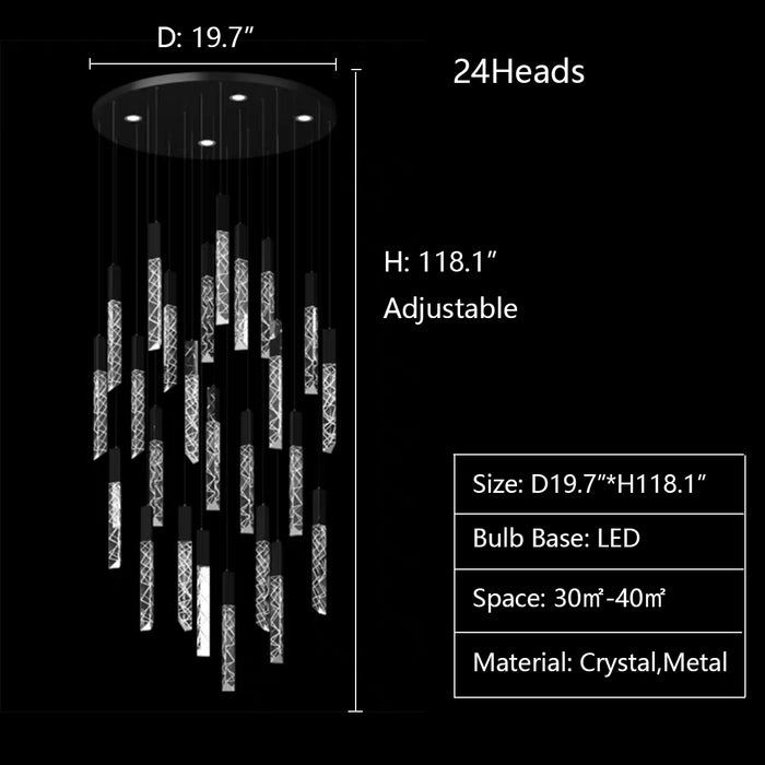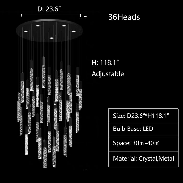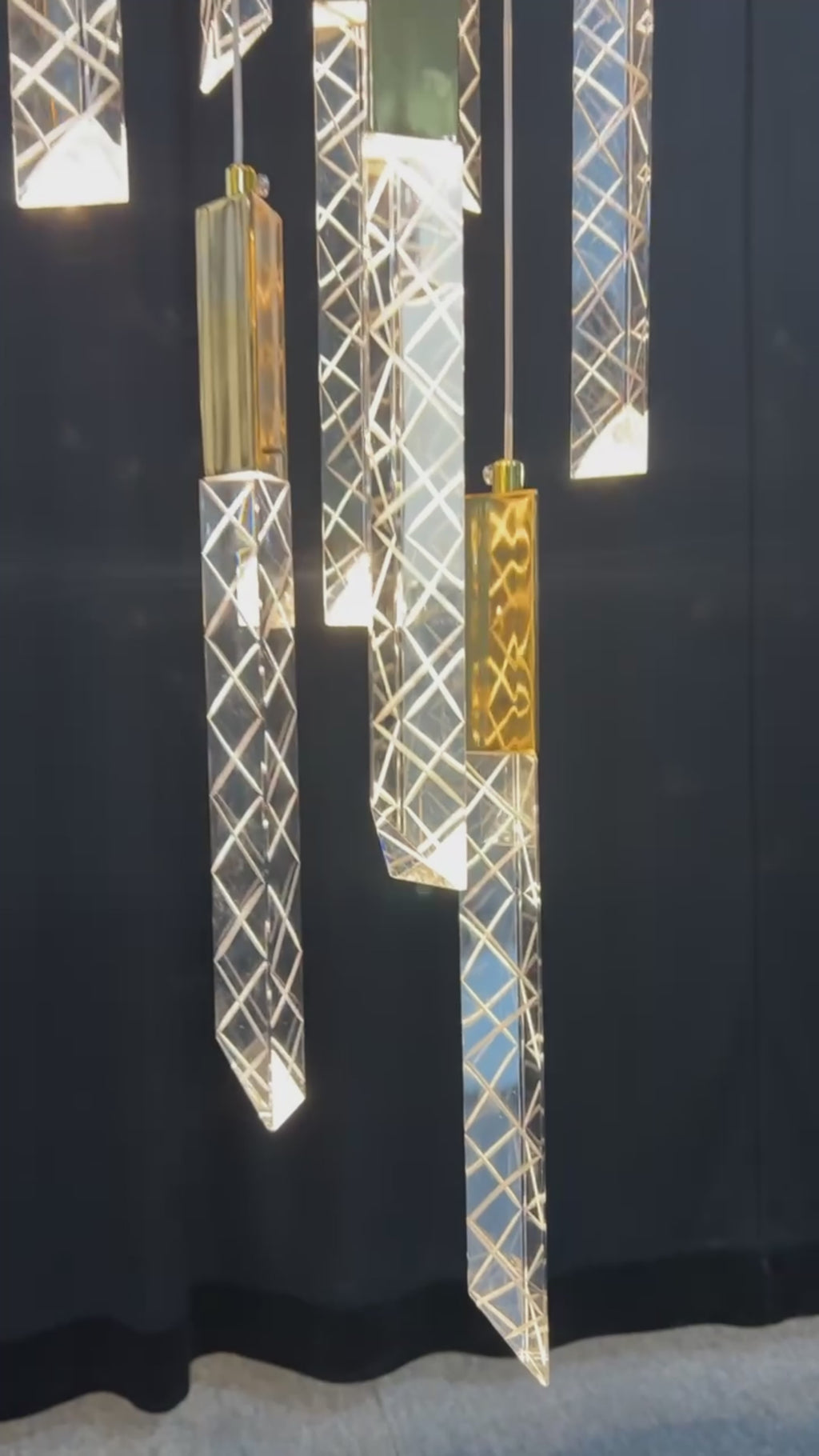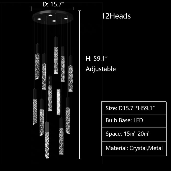 Questo lungo lampadario è realizzato in cristallo e metallo di alta qualità, con filo metallico regolabile intrecciato con aste di cristallo pendenti e luce sfalsata, che rende lo spazio pieno di fascino artistico e interpreta il lusso della luce. Sei libero di mescolare e abbinare in base alle esigenze di illuminazione della tua stanza, due o tre insieme, appese accanto al tuo letto come illuminazione notturna o più di una per formare una luce per le scale. È una buona scelta sia come dispositivo di illuminazione che come pezzo decorativo.