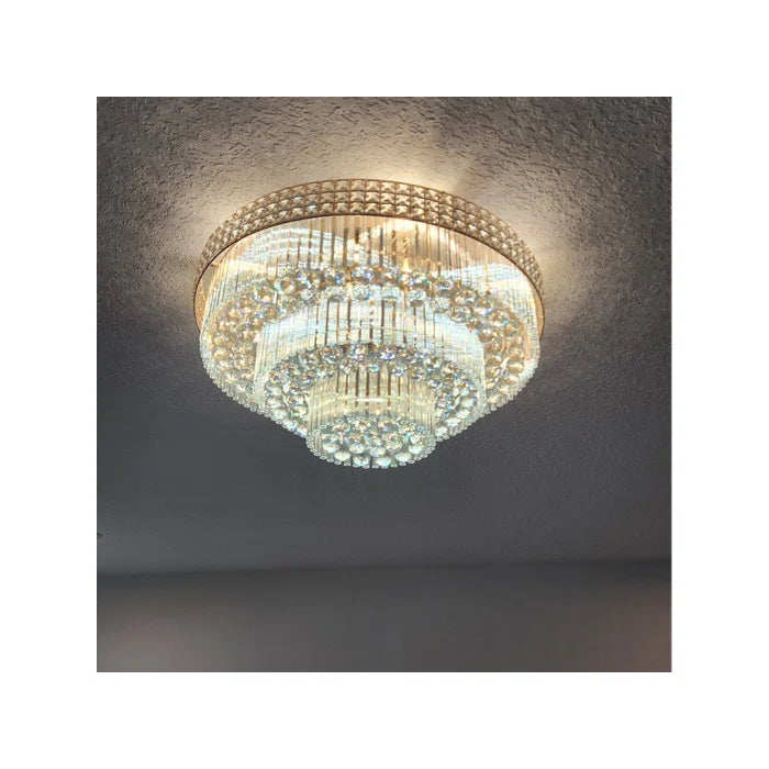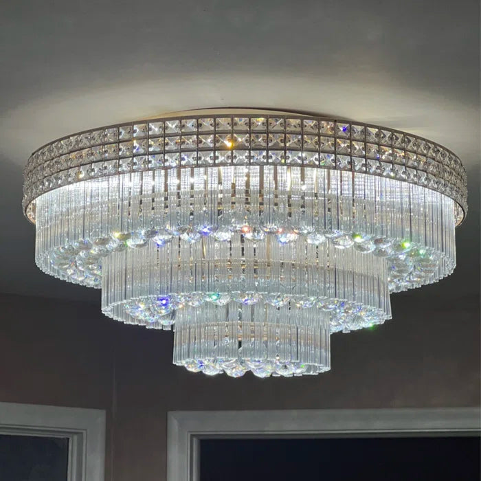 Lampadario di cristallo extra large a tre strati rotondo di lusso con montaggio a incasso per soggiorno