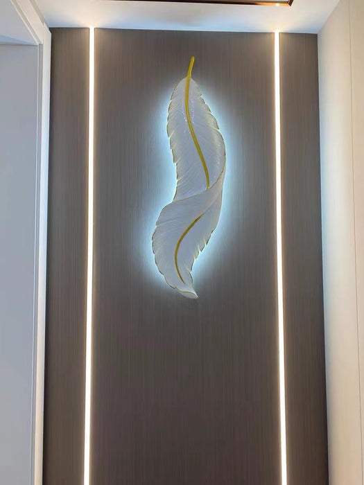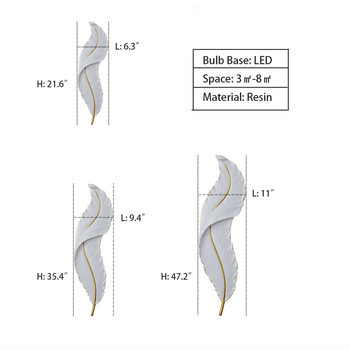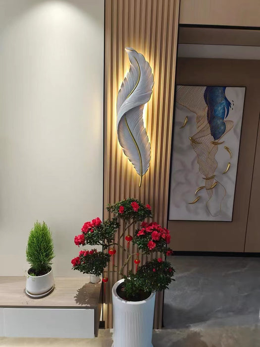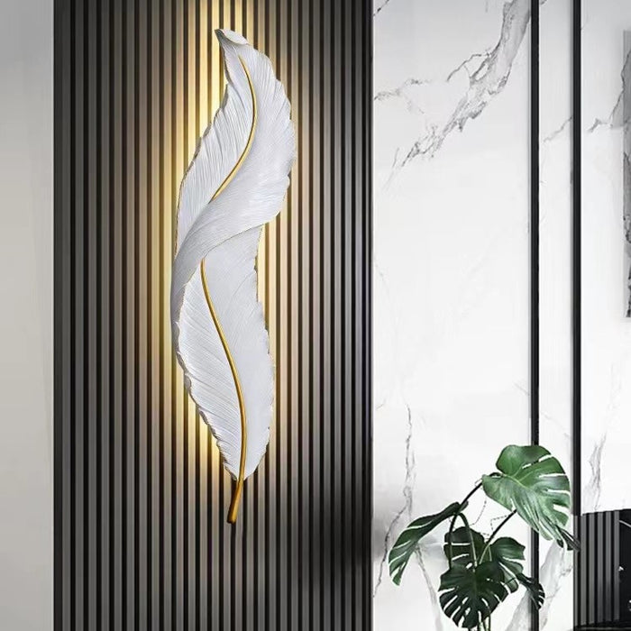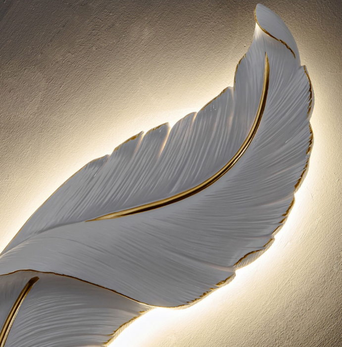 Luce creativa di lusso da parete in resina bianca con piume per soggiorno/comodino/atrio