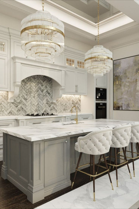 Lampadario di cristallo rotondo multistrato moderno e di lusso leggero