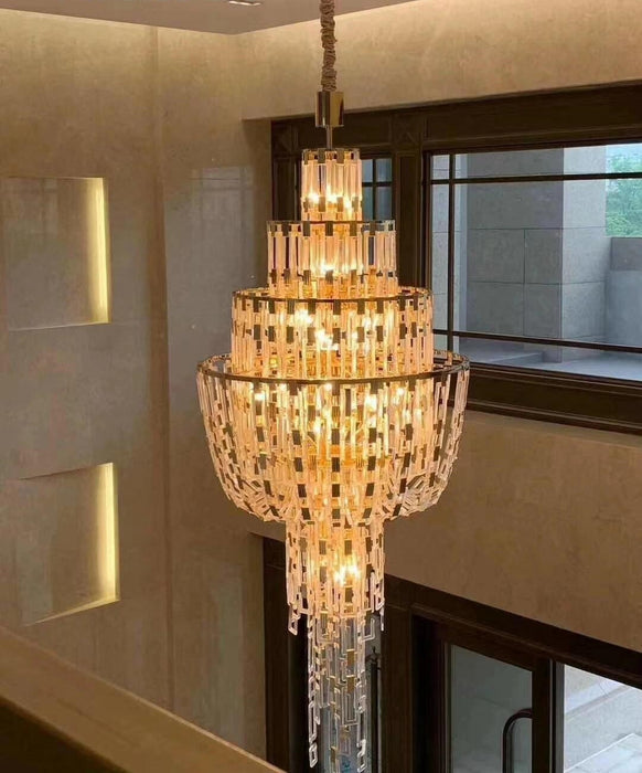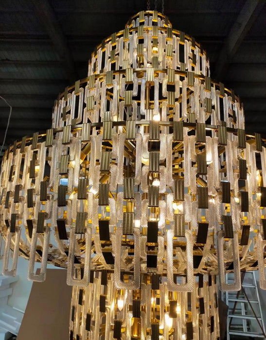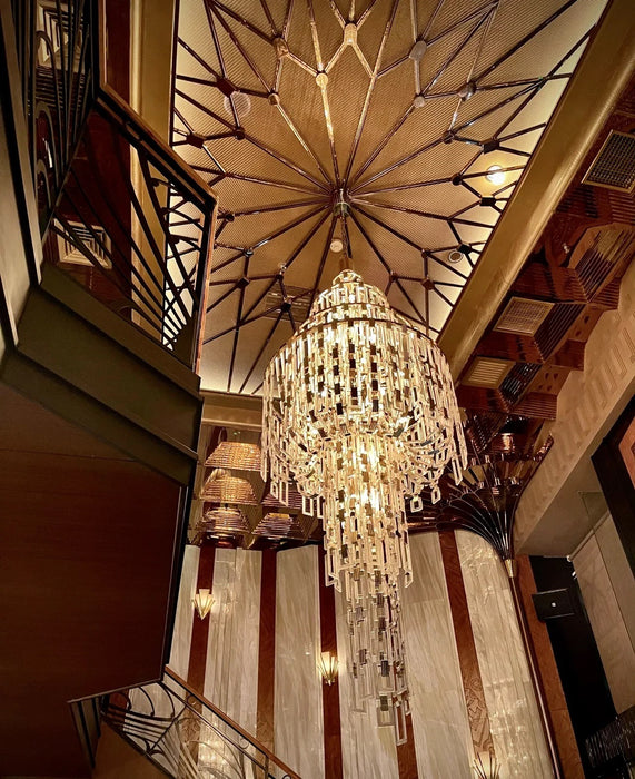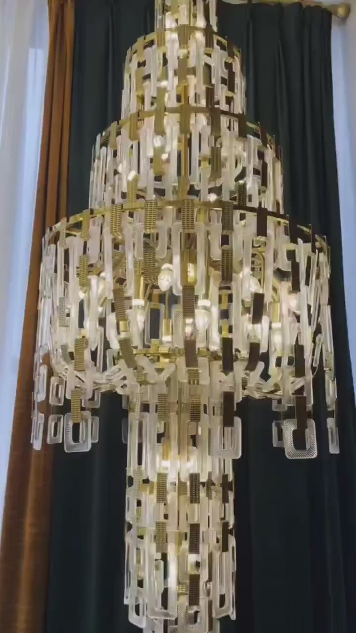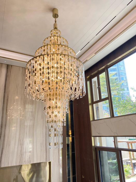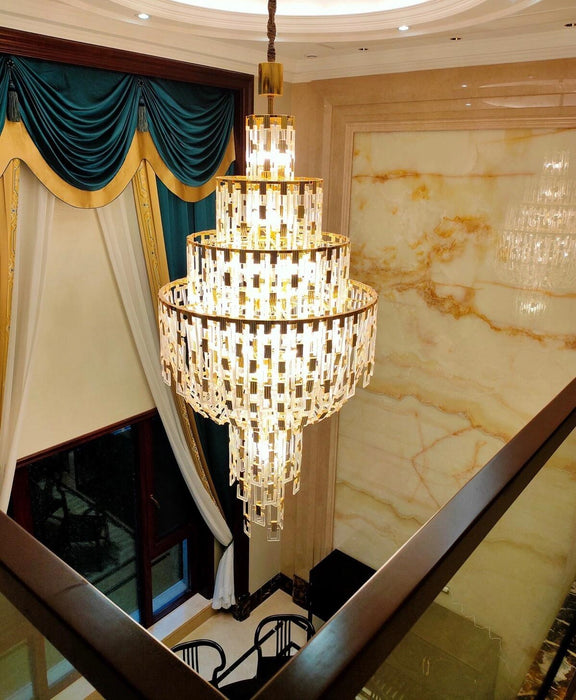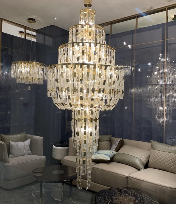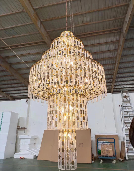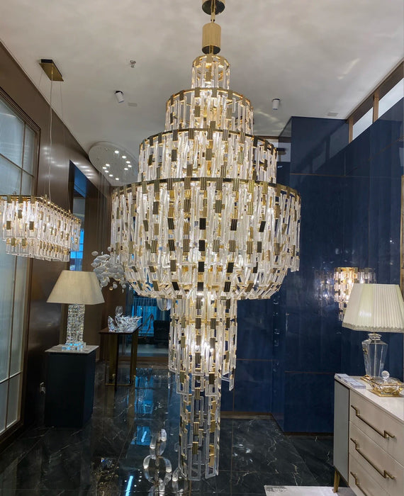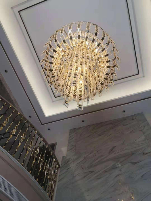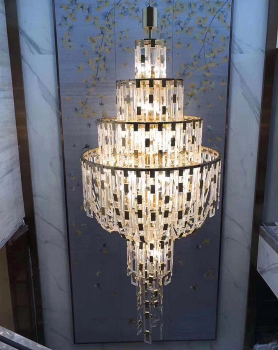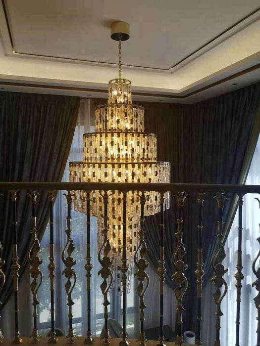 Luxury Multi-tiered Crystal Glass Buckles Chandelier for High-ceiling