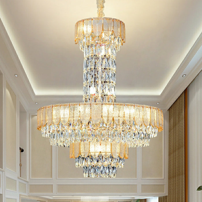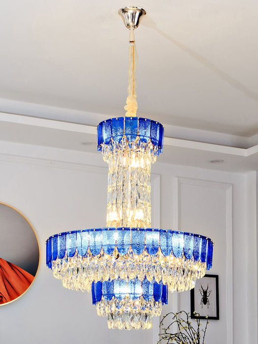 Lampadario alto duplex per ristorante/hotel, foyer, lampada da soffitto alta per scala/soggiorno in grigio/ambra/blu rifinito
