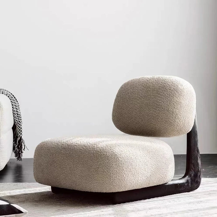 Modern Boucle Sherpa Lounge Accent Chair With Wood Base
