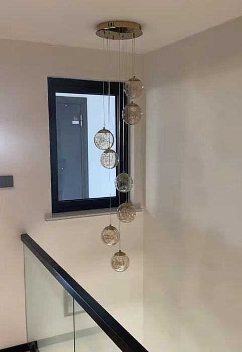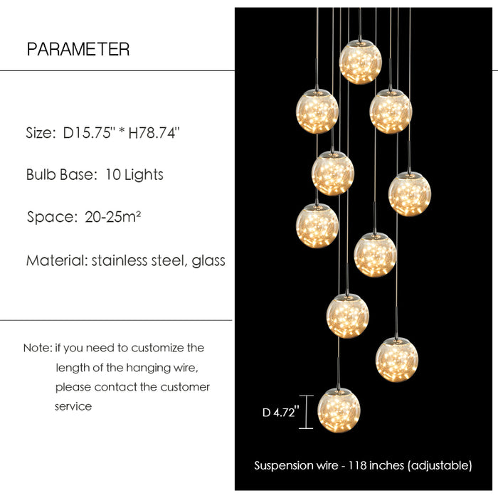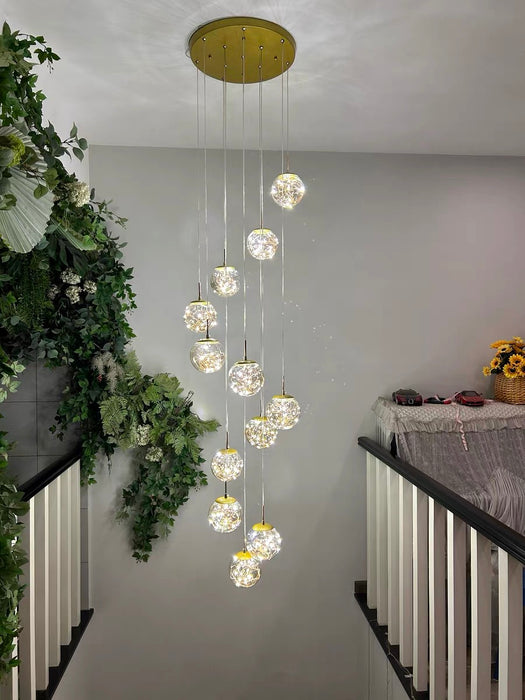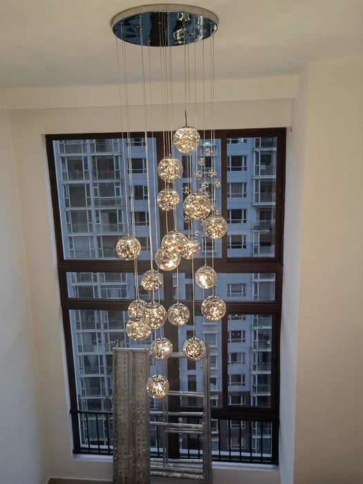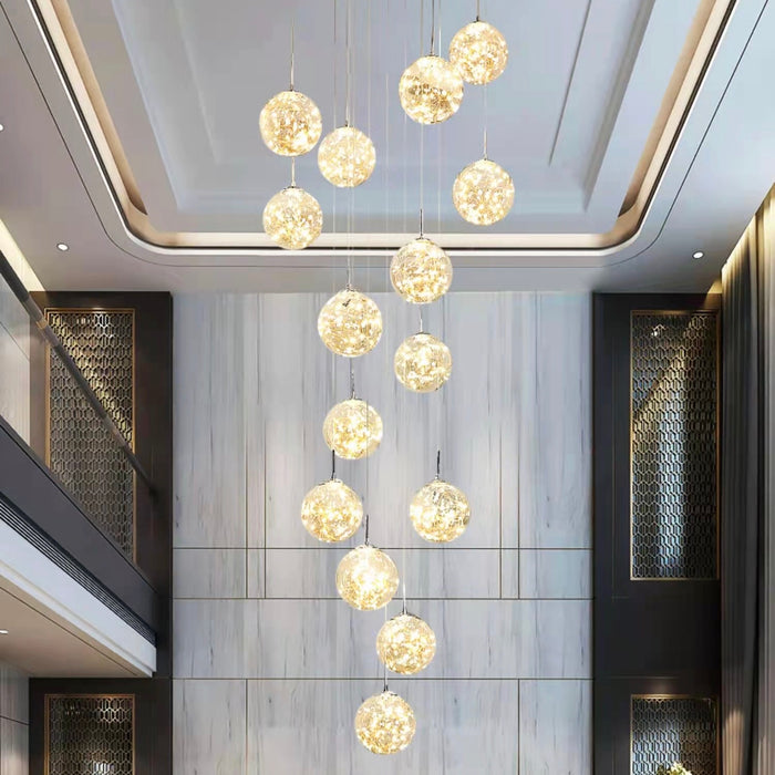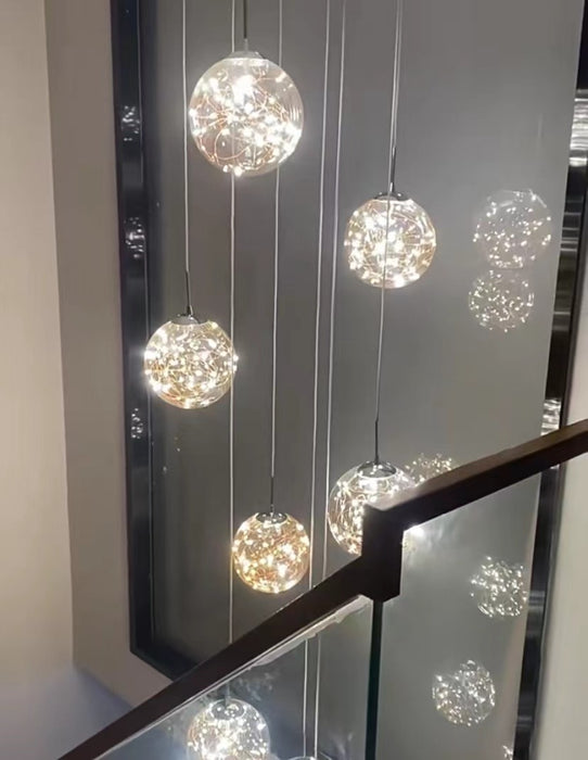Lampadario moderno Starlight Globe per Foyer Hall Lampada da soffitto per soggiorno con decorazione a sfera in vetro trasparente