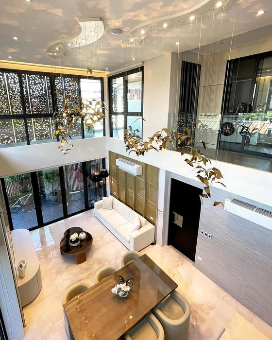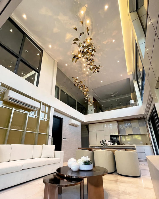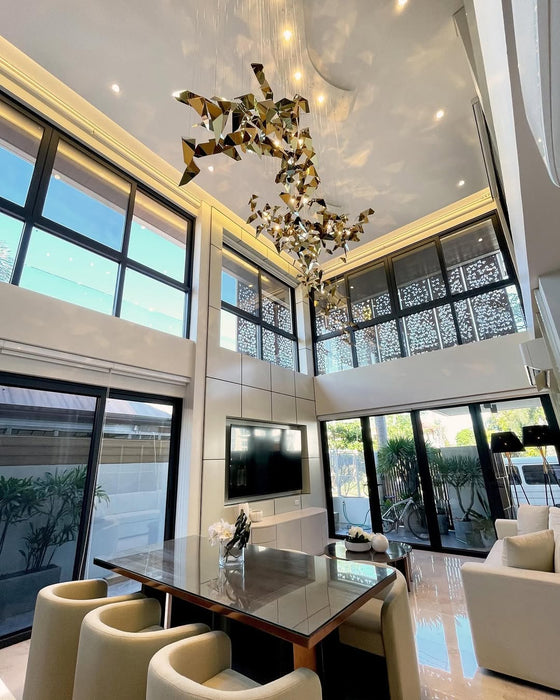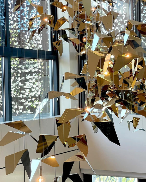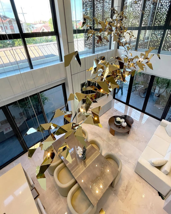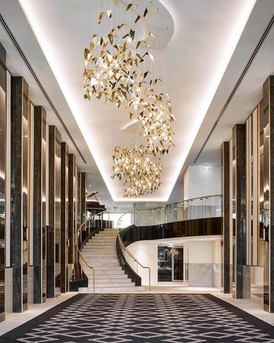 Nuovo lampadario galleggiante creativo con ali dorate per hall/hotel/ristorante