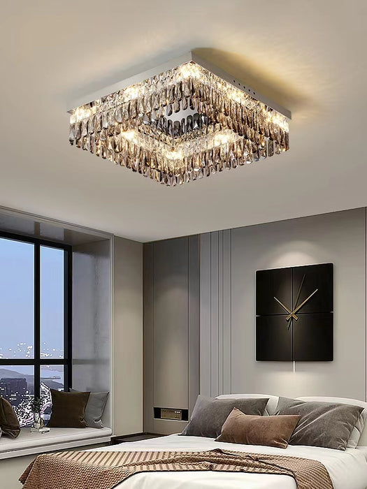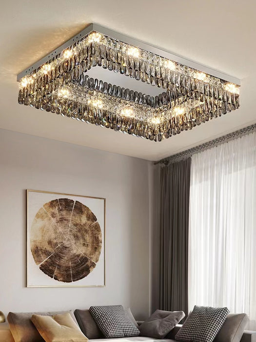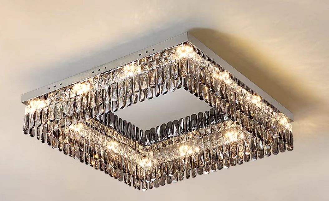 Lampadario da incasso a specchio moderno di grandi dimensioni in acciaio inossidabile con pendente in cristallo per soggiorno/camera da letto