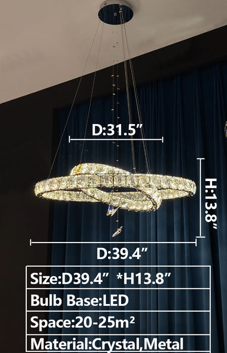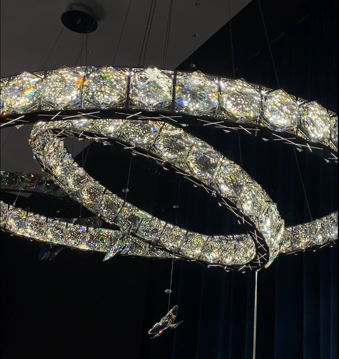 2023 New Light Luxury Crystal Rings Chandelier with Butterfly for Living/Dining Room/ Bedroom