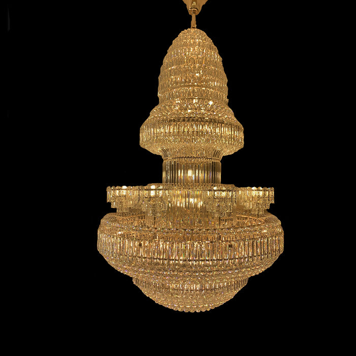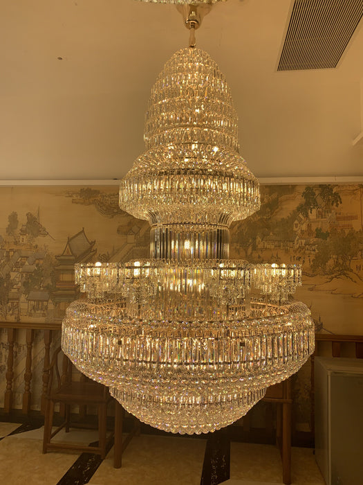Golden Era Grand Fountain Clear Crystal Chandelier of Luxury and Opulence for High-ceiling