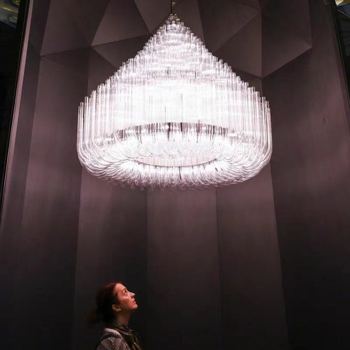 Extra Large Modern Tiers Clear Glass Tubes Chandelier for Living Room/Hotel Lobby
