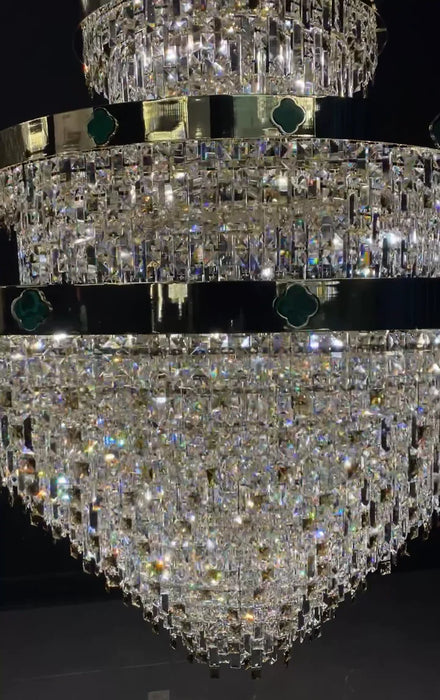 Extra Large 3-layer Conical Funnel Crystal Chandelier For High-ceiling Foyer/Hallway/Entryway