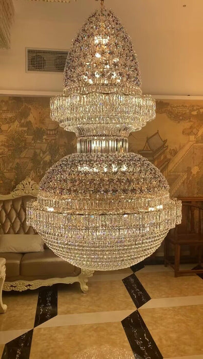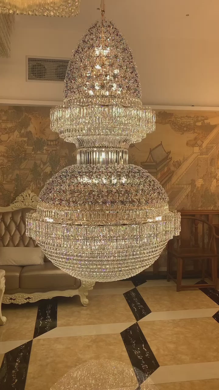 Golden Era Grand Cascade Colorful Flower Crystal Chandelier of Luxury and Opulence for High-ceiling