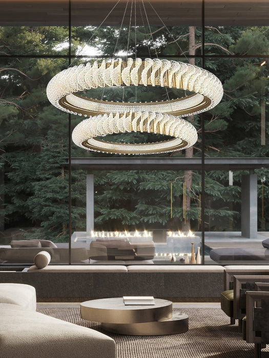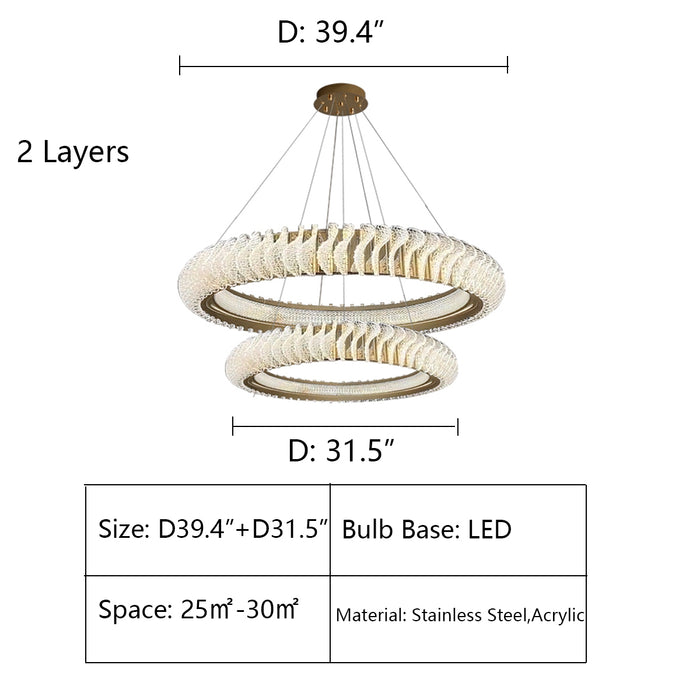 Extra Large Tiers Modern Stainless Steel Ring Chandelier for Living Room/Foyer/Big Entrys