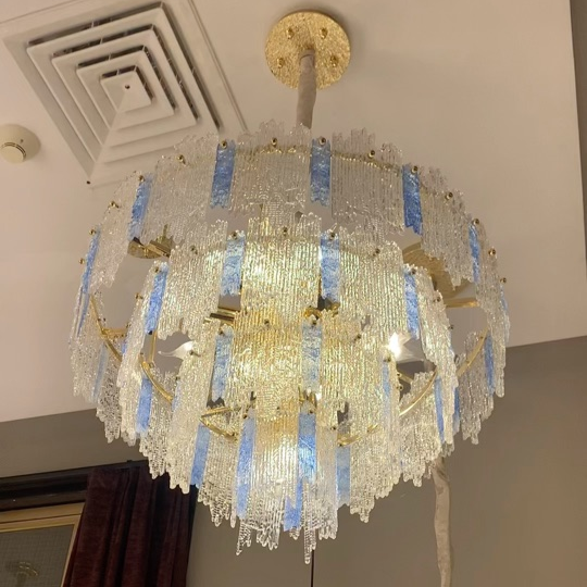 Light Luxury 5-Tier Round Pink/Blue Crystal Chandelier for Living Room/Bedrom
