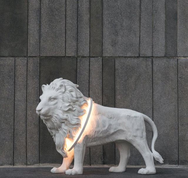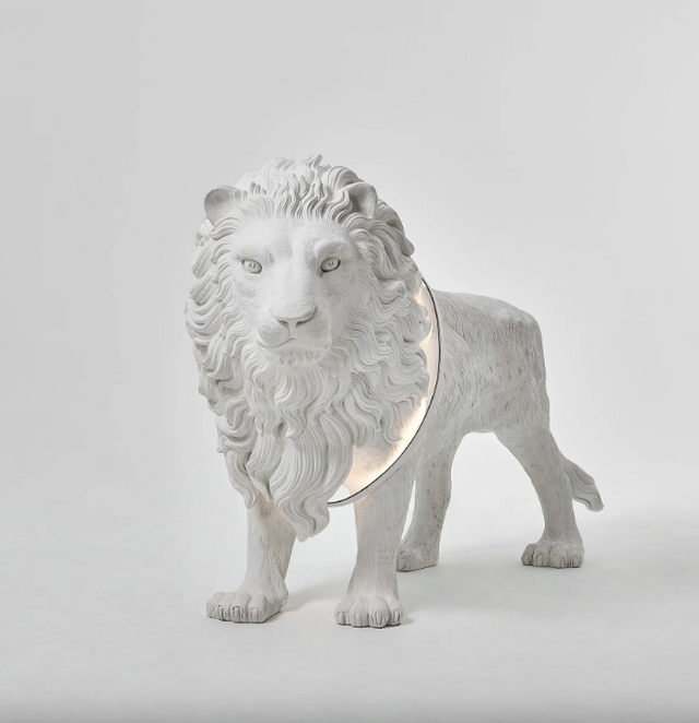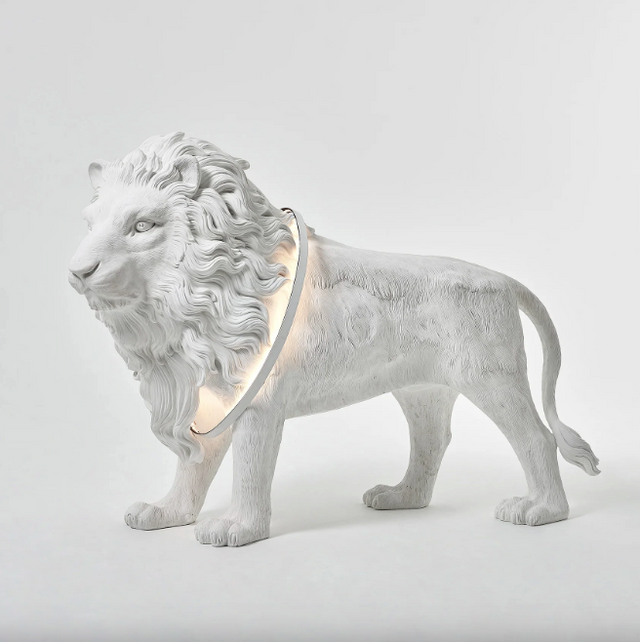 Illuminate your space with the regal Lion Floor Lamp. This elegant lamp features a sleek design and provides a warm, ambient light that is perfect for any room.