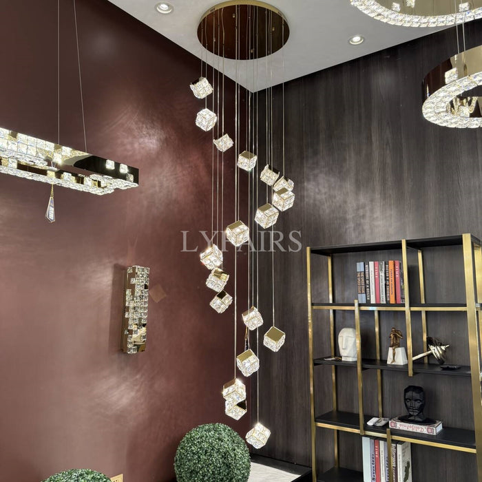 Luxury Floating Crystal Magic Cube Chandelier for High Ceilings