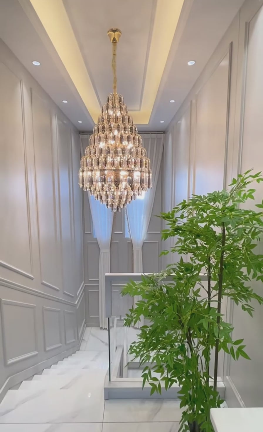 Luxury Multi-tiered Honeycomb Crystal Chandelier for High Ceiling