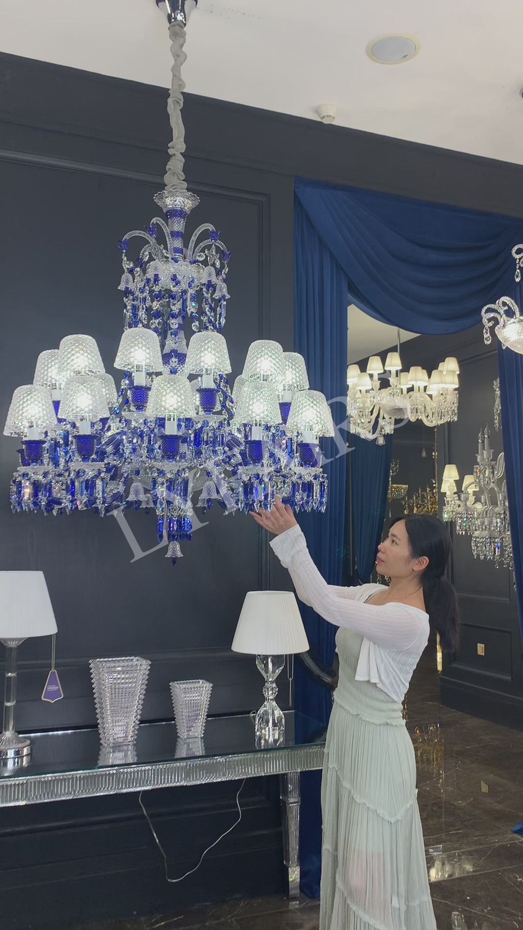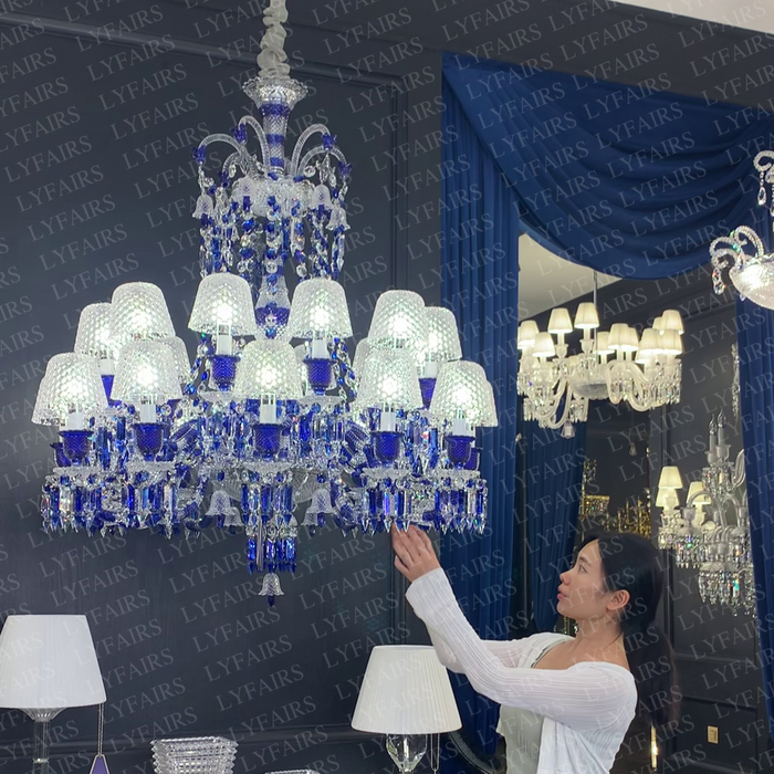 Luxury Vintage Blue Crystal Lampshade Chandelier for Living Room/Staircase/Foyer