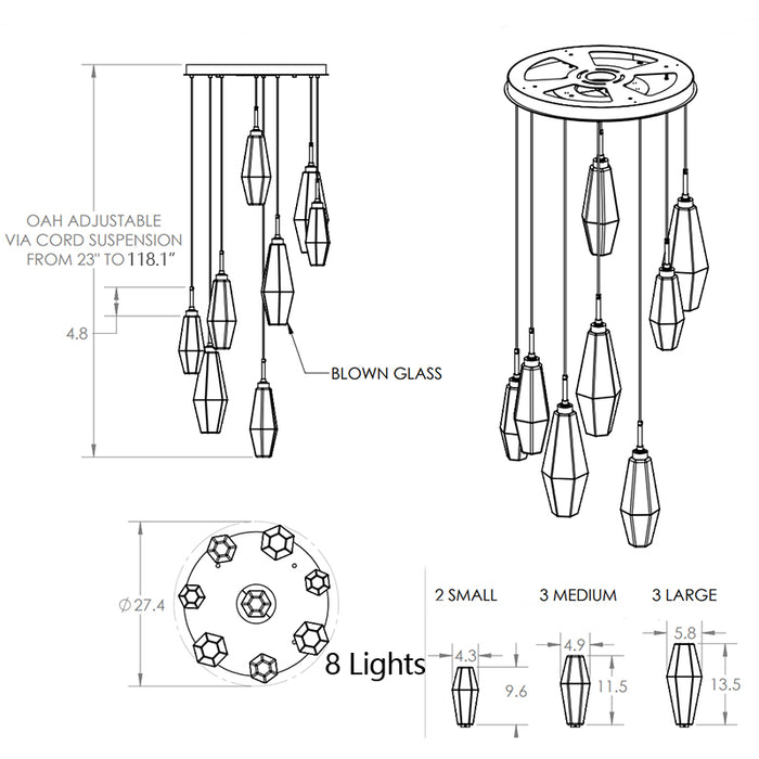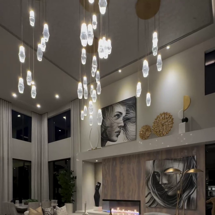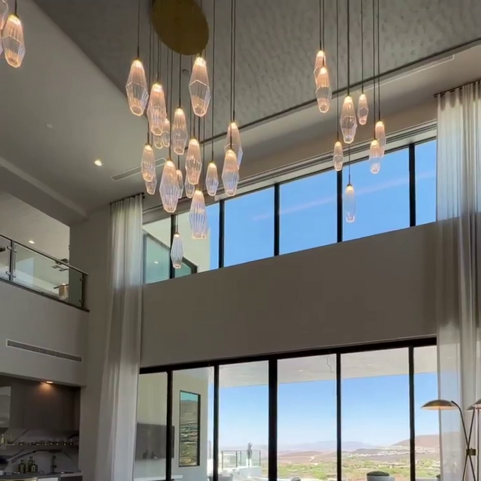 Modern Artisan Crafted Geometric Optic Glass Pendant for Staircase/Foyer/Entryway/Hallway
