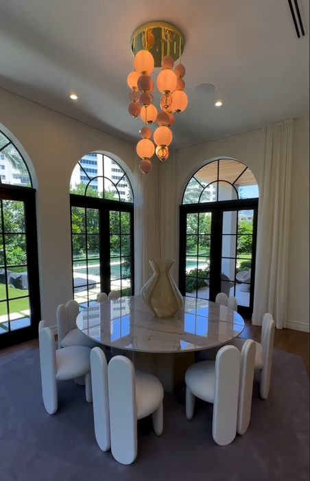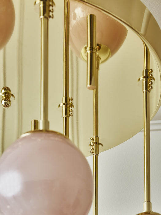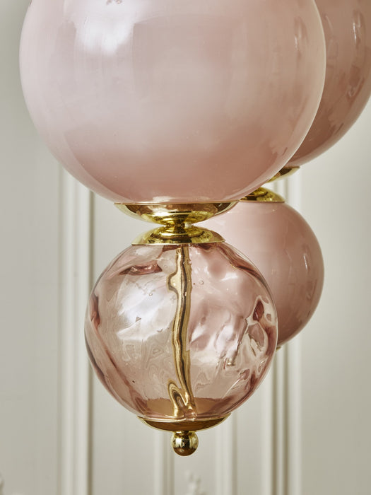 Modern Ball Cluster Chandelier with Pink Opaline Glass