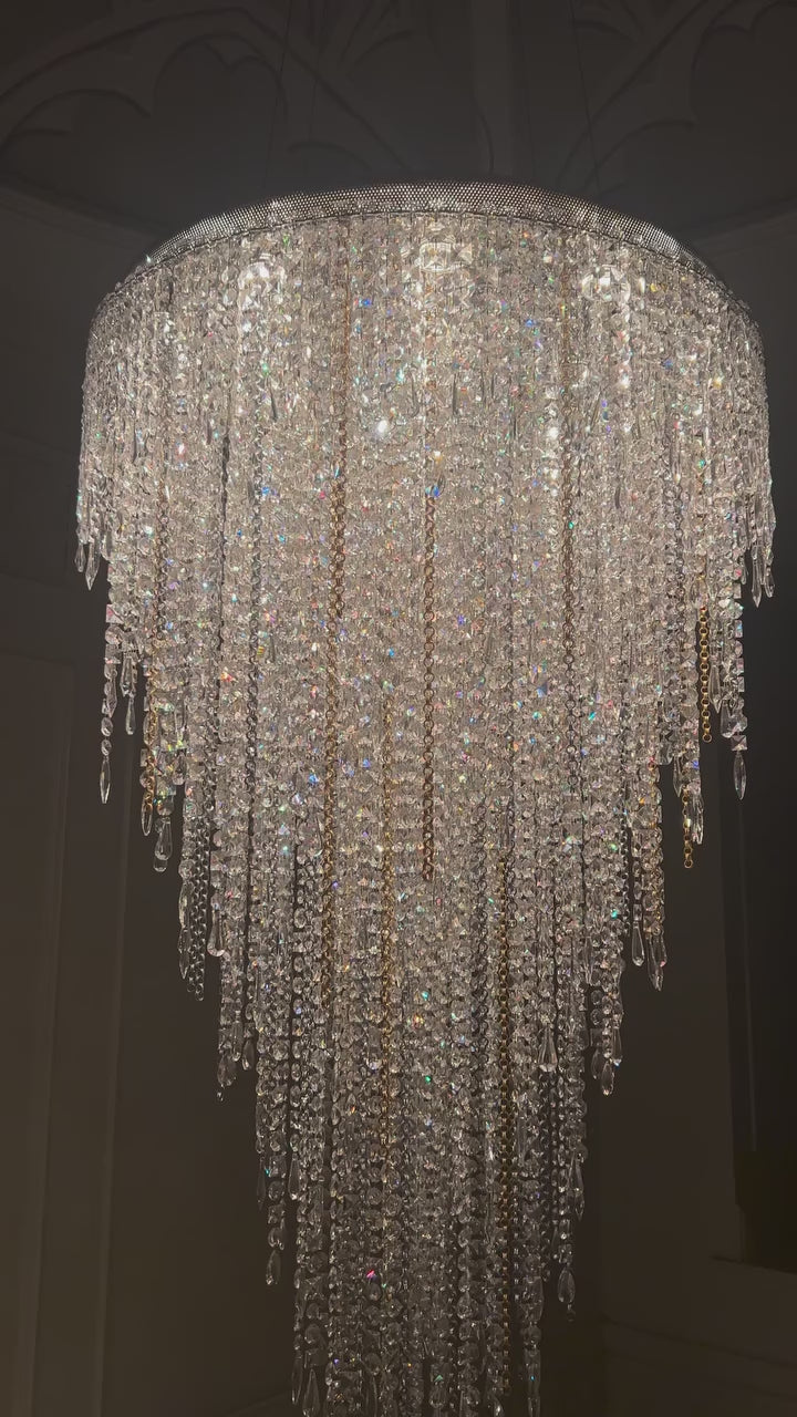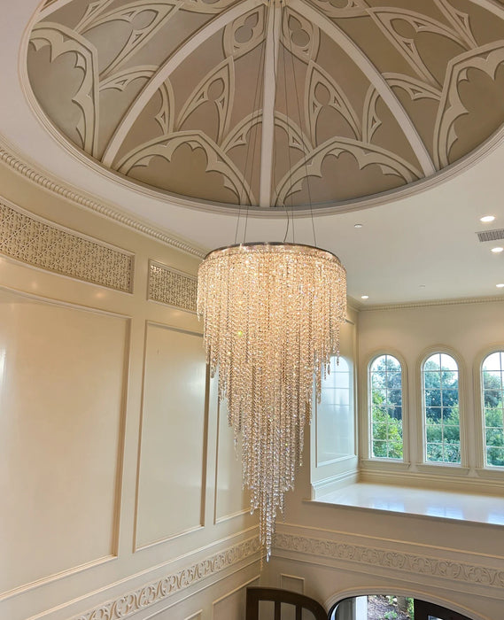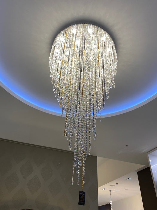 Modern Luxury Flush Mount Crystal Tassel Chandelier for Staircase/Living Room