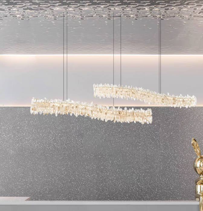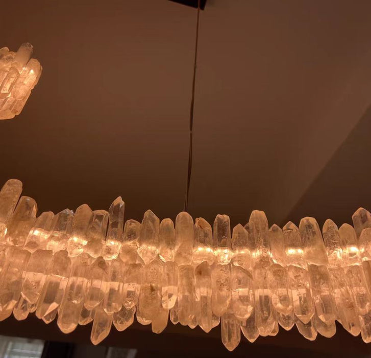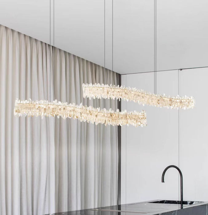 Modern Light Luxury Designer Model Natural Crystal Stone Long Dining Chandelier Furniture for Dining Room/Kitchen Island/Study Room