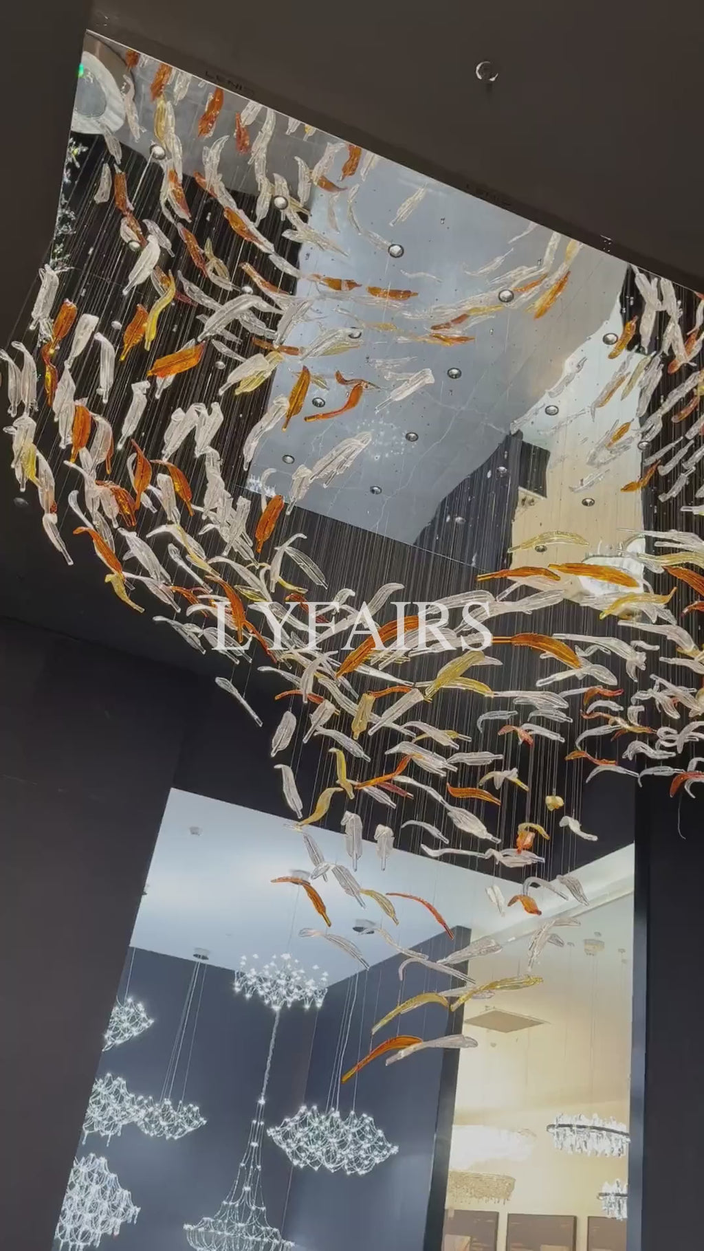 This oversized modern luxury chandelier features a graceful cascade of floating leaf-shaped glass pieces, creating an eye-catching artistic focal point. Designed for high-ceiling spaces, it casts soft ambient light while bringing elegant opulence to your interior. Ideal for villas, hotel lobbies, grand halls and luxury foyers, it elevates any upscale residential or commercial space with refined, contemporary style.