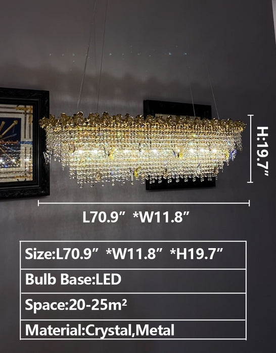 New Modern Luxury Rectangle Art Design Butterfly Crystal Chandelier for Kitchen Island/Dining Area