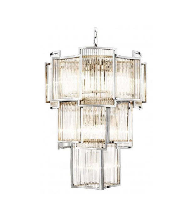 Modern Multi-tiered Tiles Crystal Rods Chandelier for High-ceiling