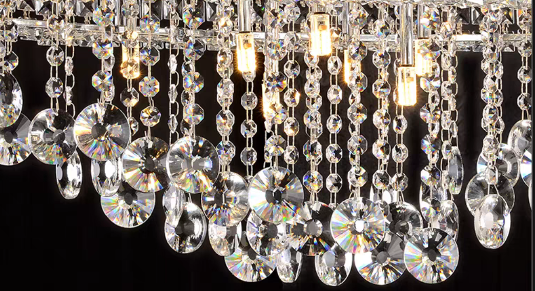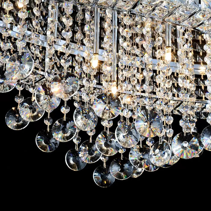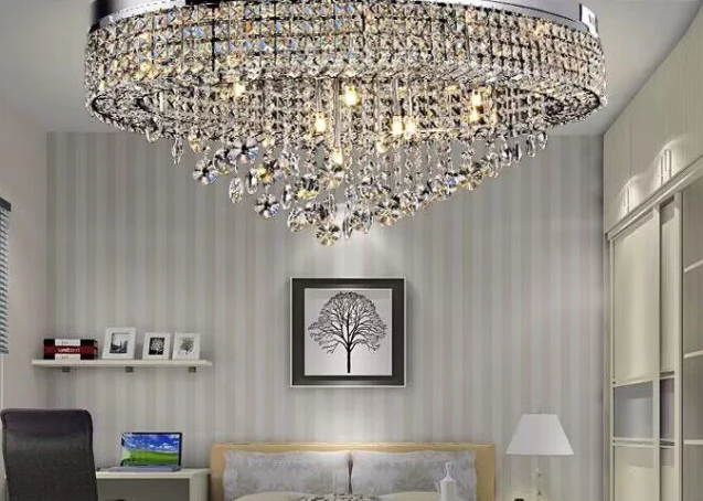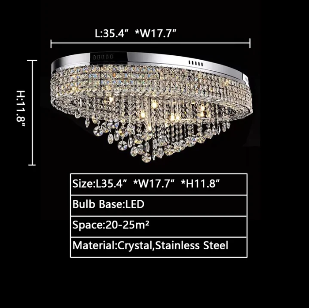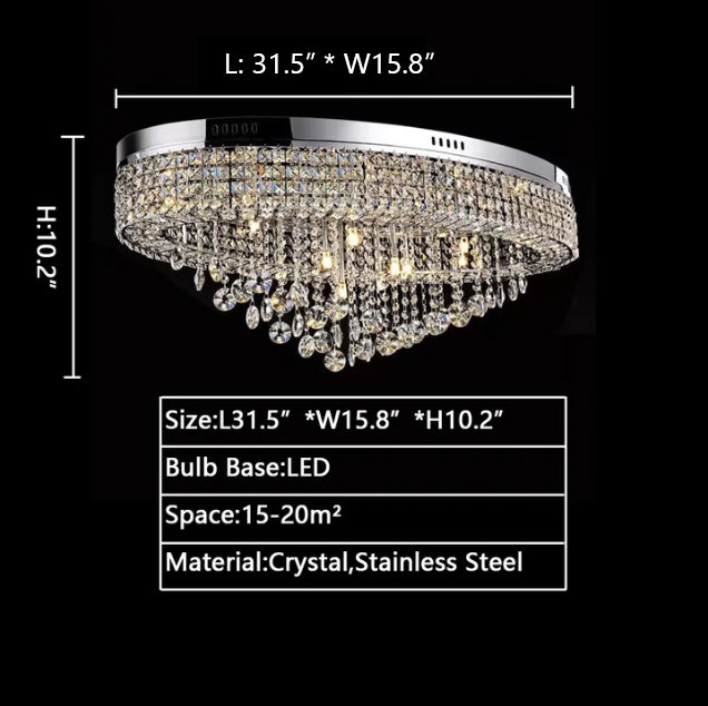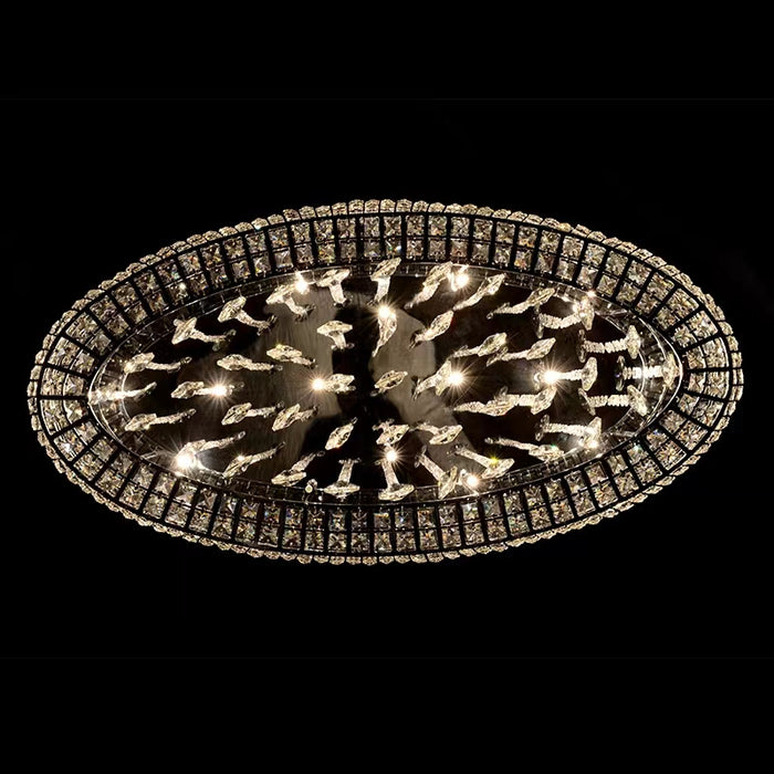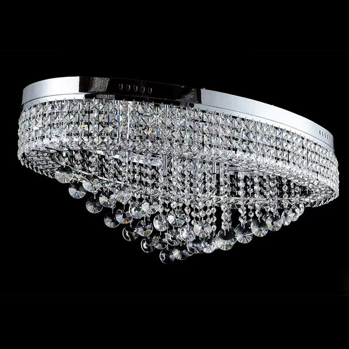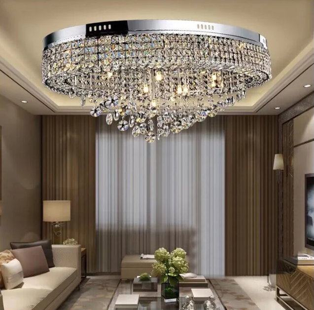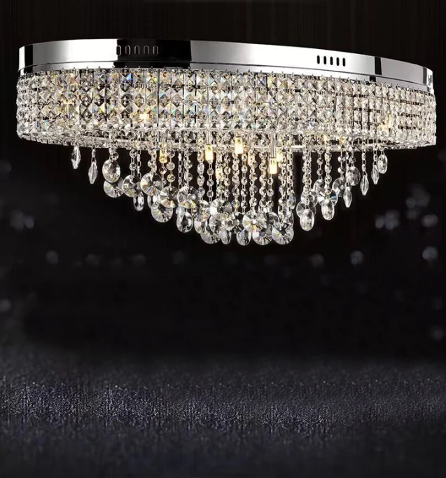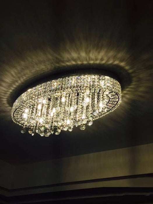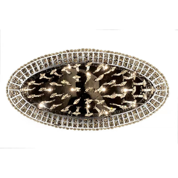 Modern Oversized Flush Mount Oval Crystal Pendant Chandelier for Living Room/Dining Table Light Fixture