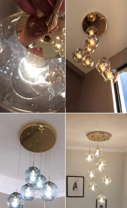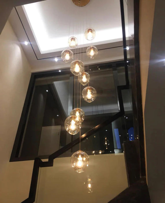 Nordic Designer Long Spiral Glass Chandelier Modern Light Luxury Decorative Light Fixture For Staircase/Hallway