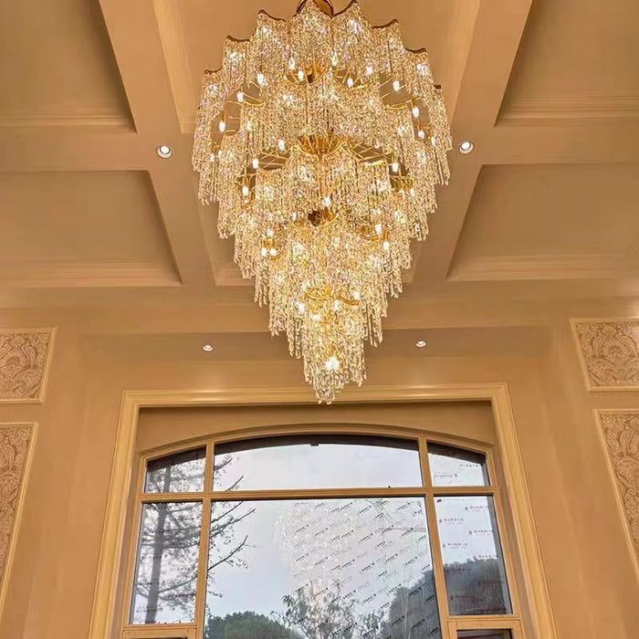 Oversized European Multi-layers Golden Luxury Crystal Chandelier Villa/High-ceiling/Foyer