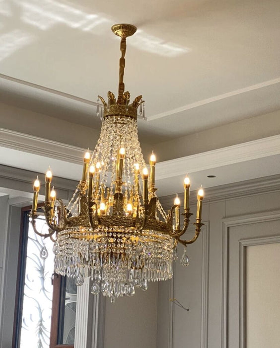 Stunning Oversized Luxury Golden Metal Candle Crystal Tassel Chandelier For High-ceiling Staircase/Entryway/Living/Meeting Room